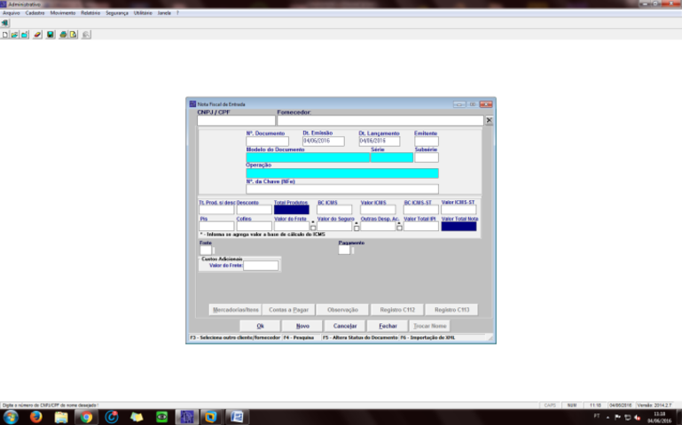 2 - Abrir o Administrativo – Movimento – Notas Fiscais de Entrada - Com a tela aberta clicar em F6