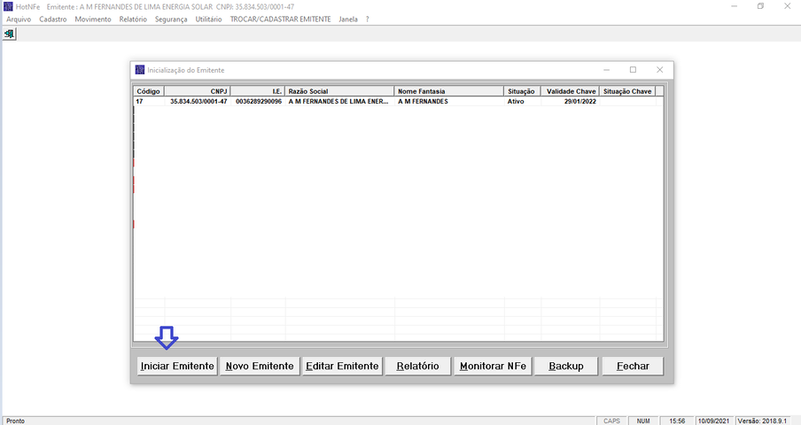 2 - Selecionar o emitente e clicar em iniciar emitente