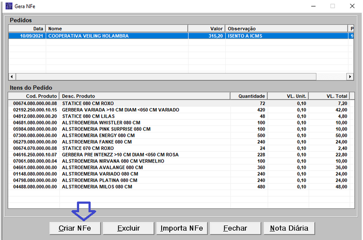 4 - Selecionar o cliente – (obs.: Código 1 é o Cliente Veiling)