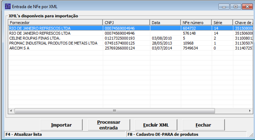 6 – Selecione o arquivo e clique em Processar entrada – Vai abrir uma tela com os dados da Nota Fiscal