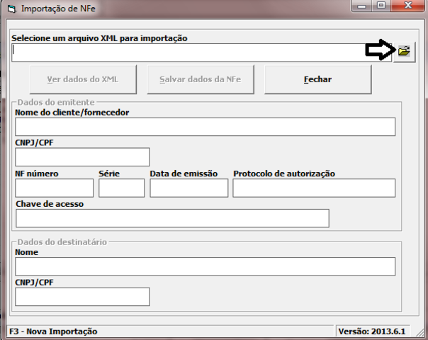 Clicar em abrir – Salvar dados da NFe - Ok – Fechar – F4